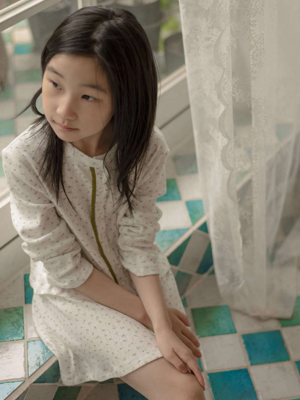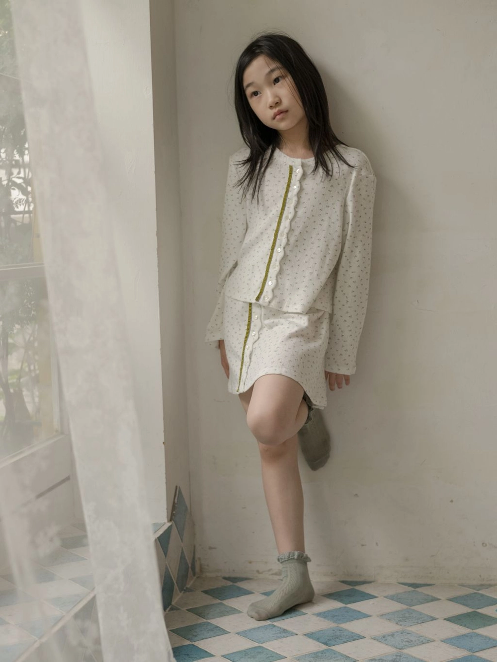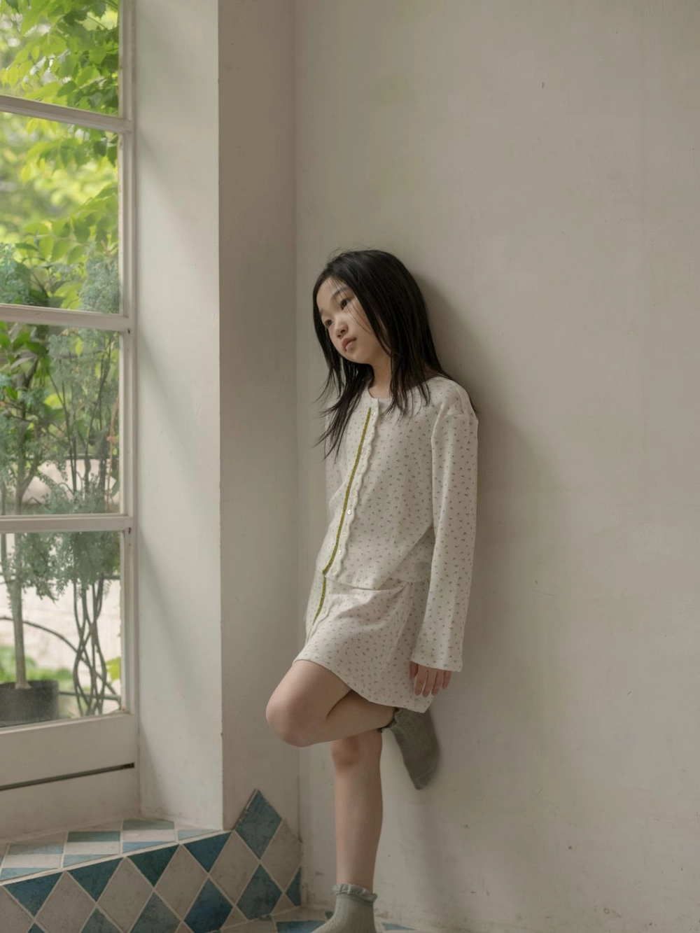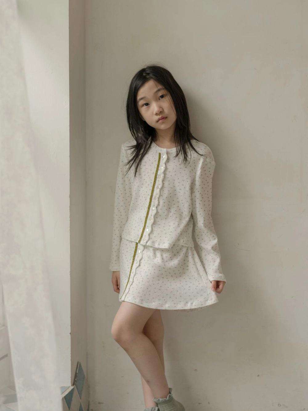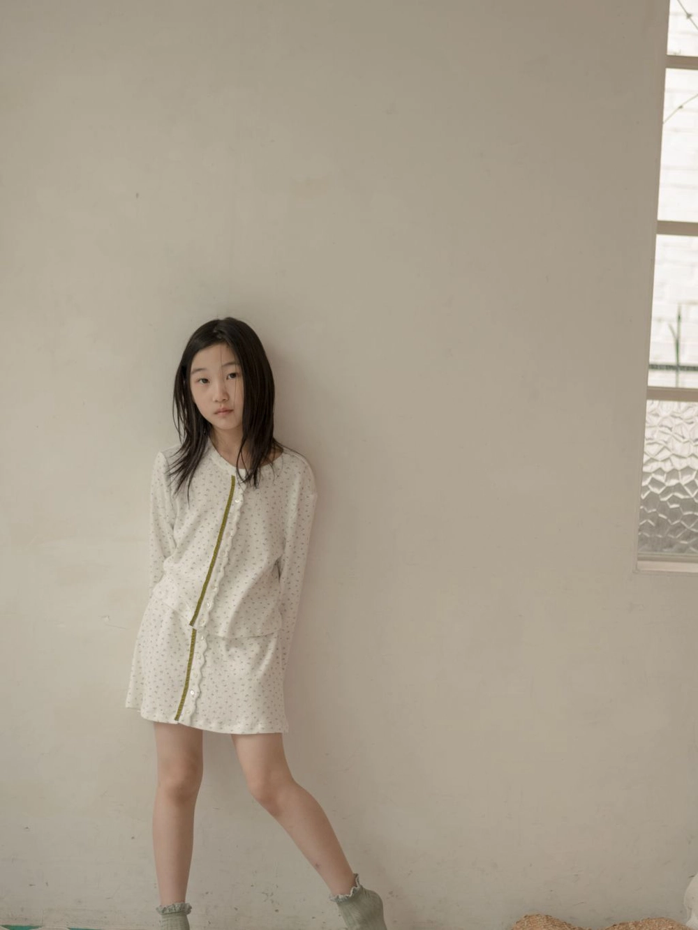 - 모델 신체 사이즈 - 키 135cm, 몸무게 26kg, 가슴 둘레 61.5cm, 허리 둘레 52cm,