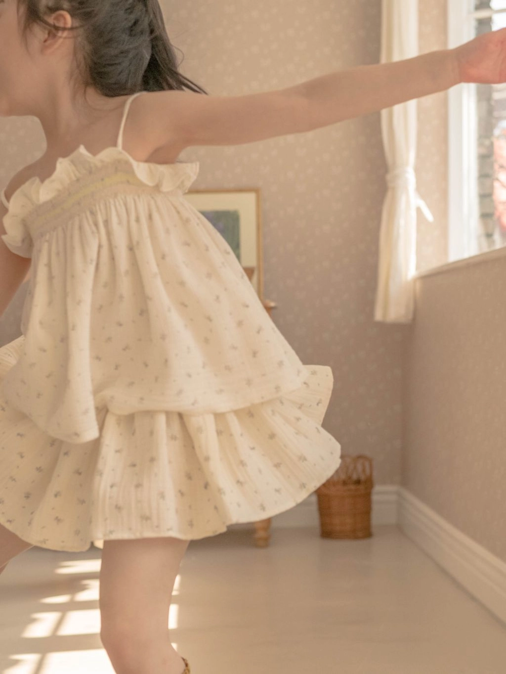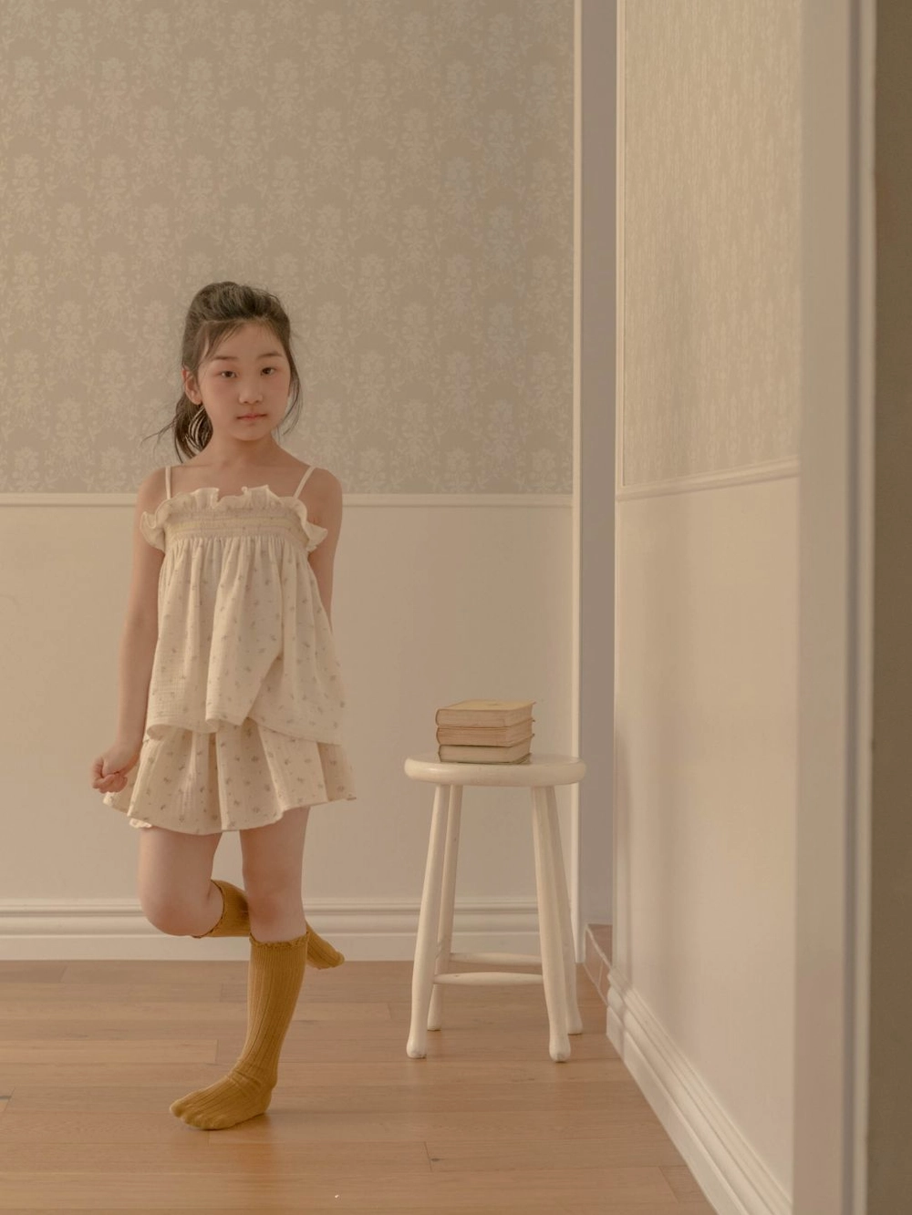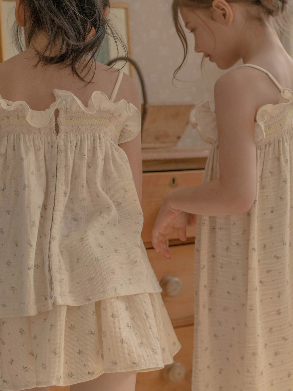 - 사랑스런 꽃이 뿌려진 코튼 소재에 파스텔톤의 스모크를 더한 캐미솔 탑입니다.