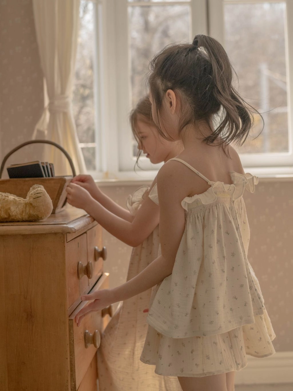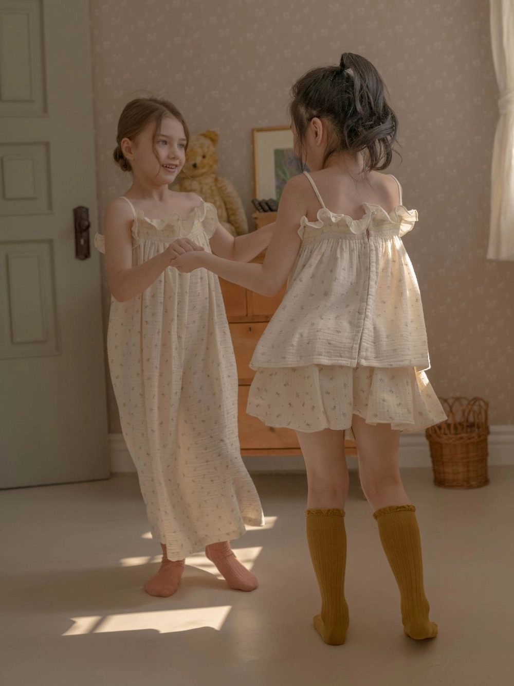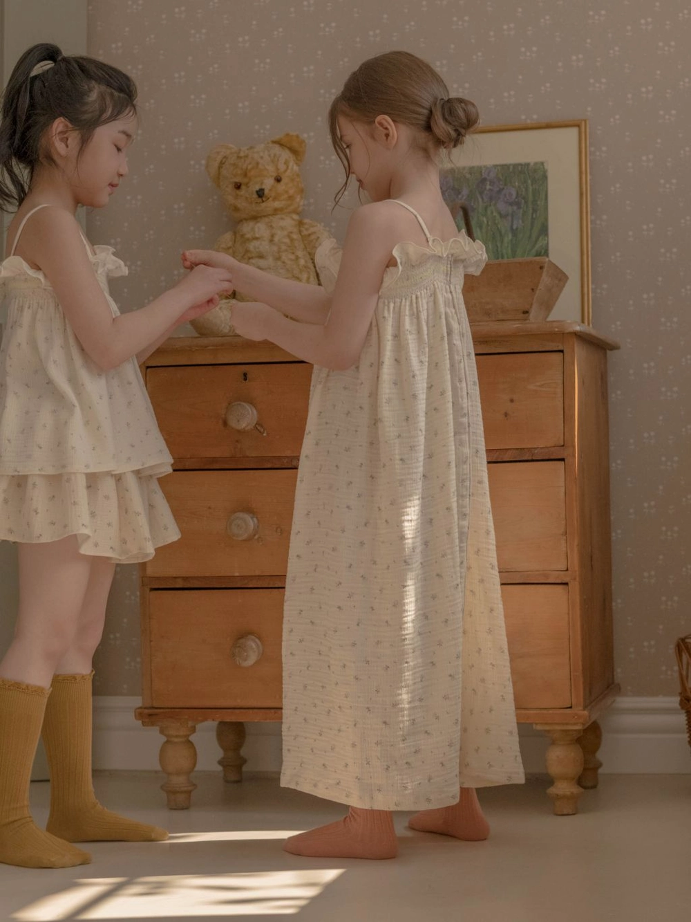- 사랑스런 꽃이 뿌려진 코튼 소재에 파스텔톤의 스모크를 더한 캐미솔 탑입니다.