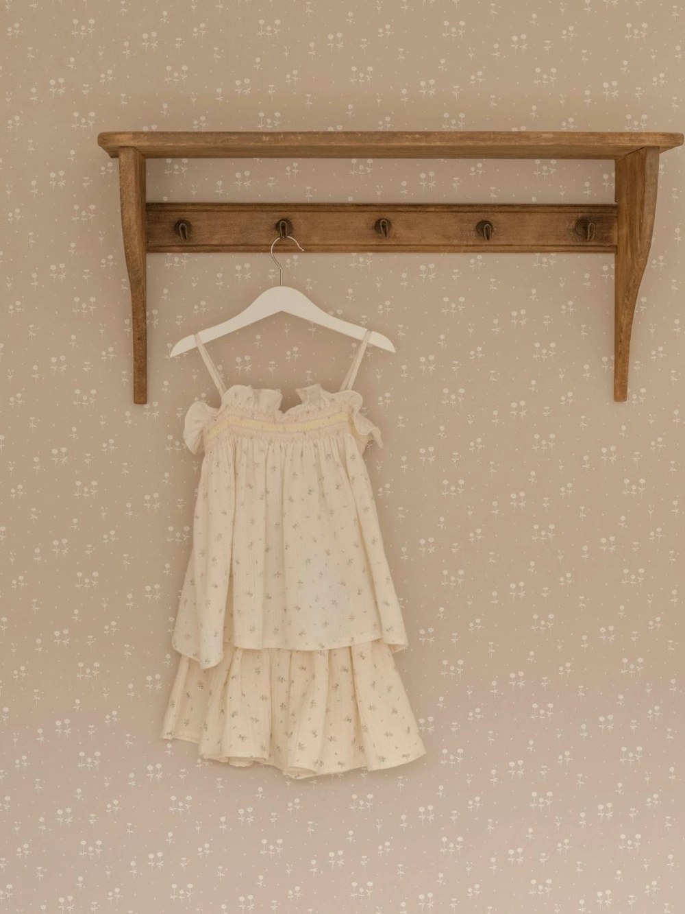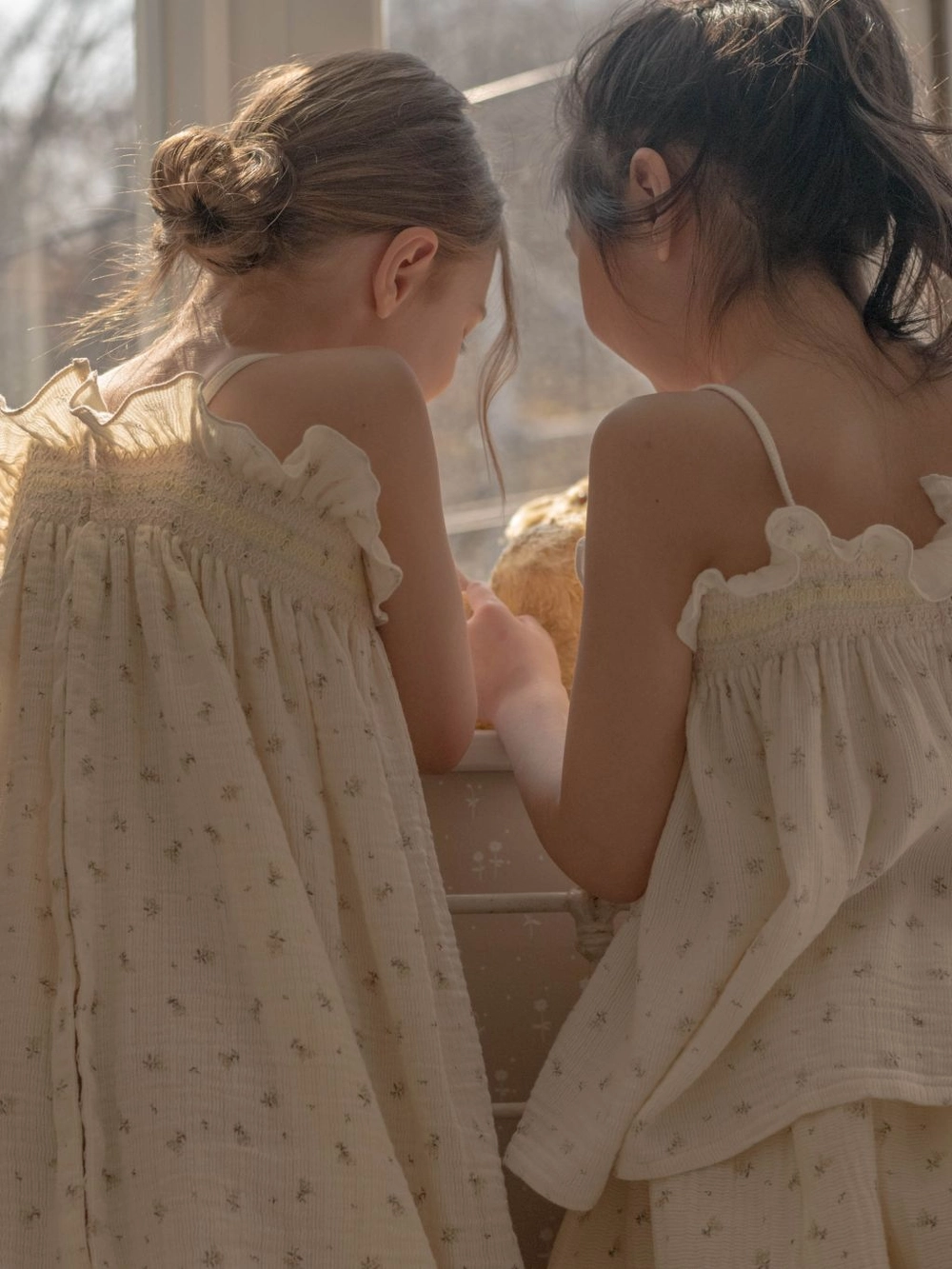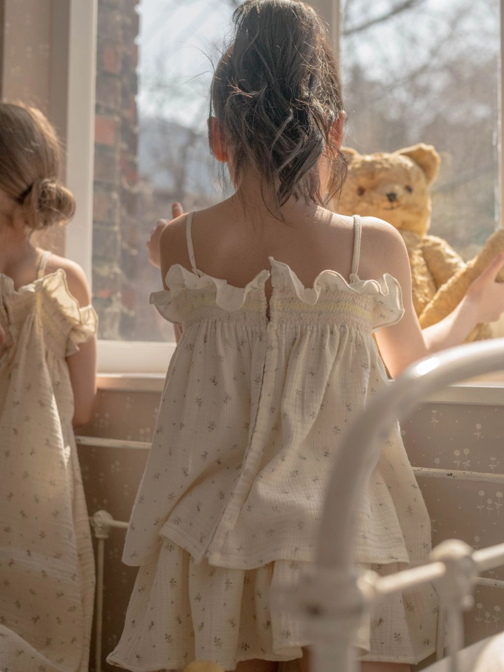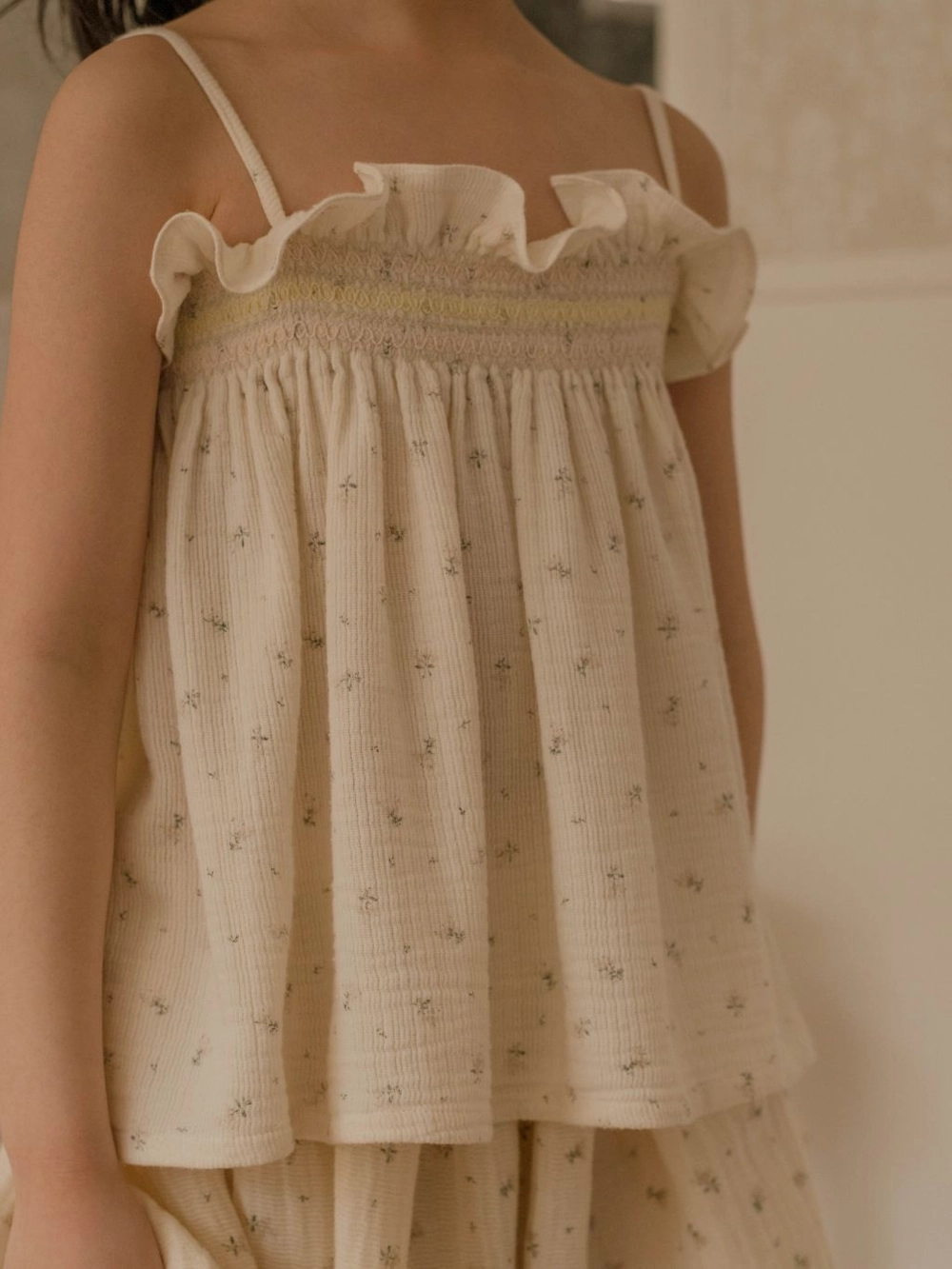"camisole top with pastel-toned smocked in cotton material sprinkled with lovely flowers. ."