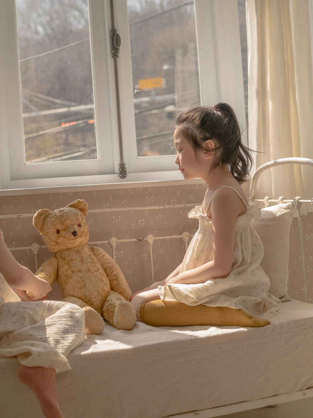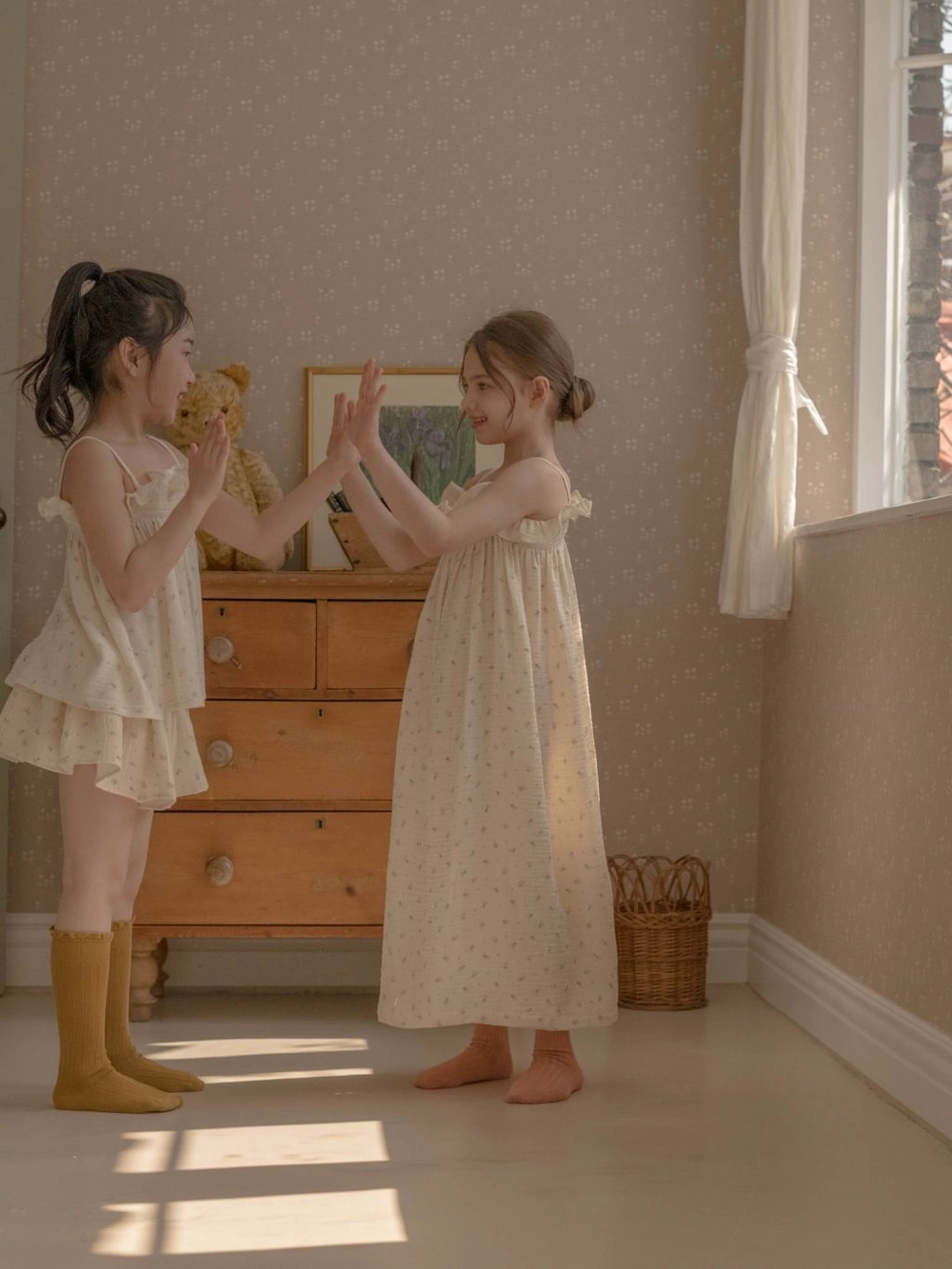 - 모델(Yesenia)은 평소 L사이즈를 입으며, L(7-8Y)사이즈를 착용하였습니다. Born 2017, Height 124cm